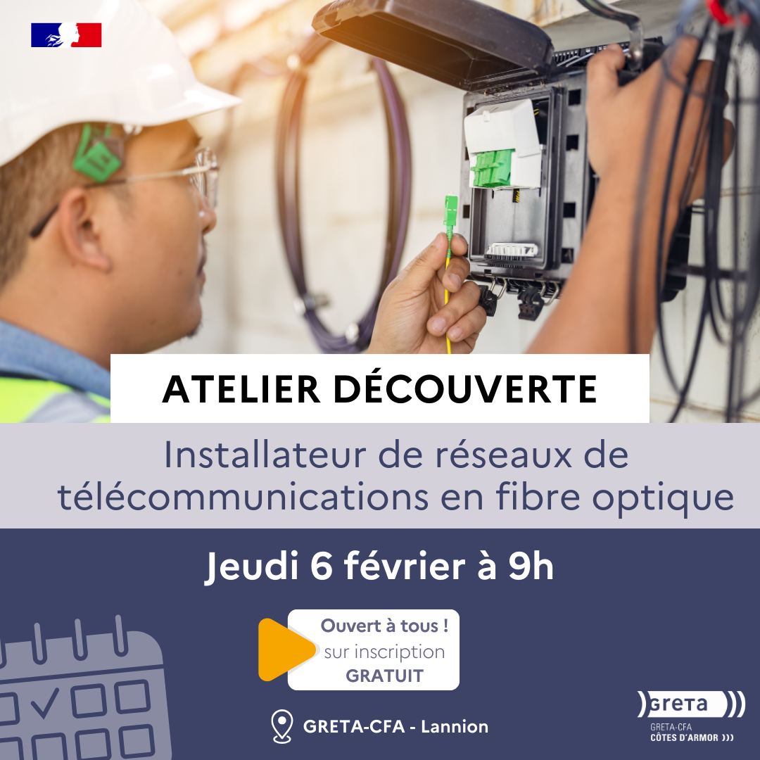 Le GRETA-CFA des Côtes d'Armor vous ouvre les portes de son plateau dédié à la fibre optique ! Rejoignez-nous pour une matinée en immersion.