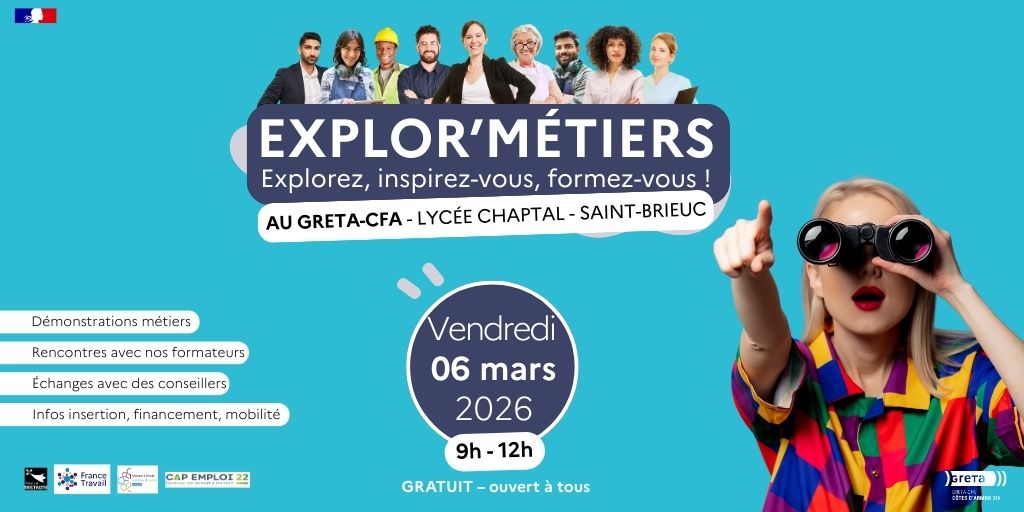 Explor’Métiers à Saint-Brieuc — Un rendez-vous emploi et formation à ne pas manquer le 6 mars !