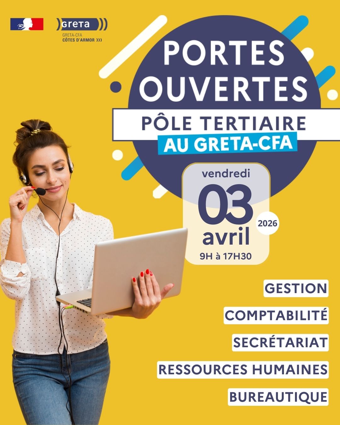 Le GRETA-CFA des Côtes d'Armor organise une journée portes ouvertes dédiée aux métiers du tertiaire pour vous faire découvrir ses formations et les opportunités d’emploi dans ces secteurs.