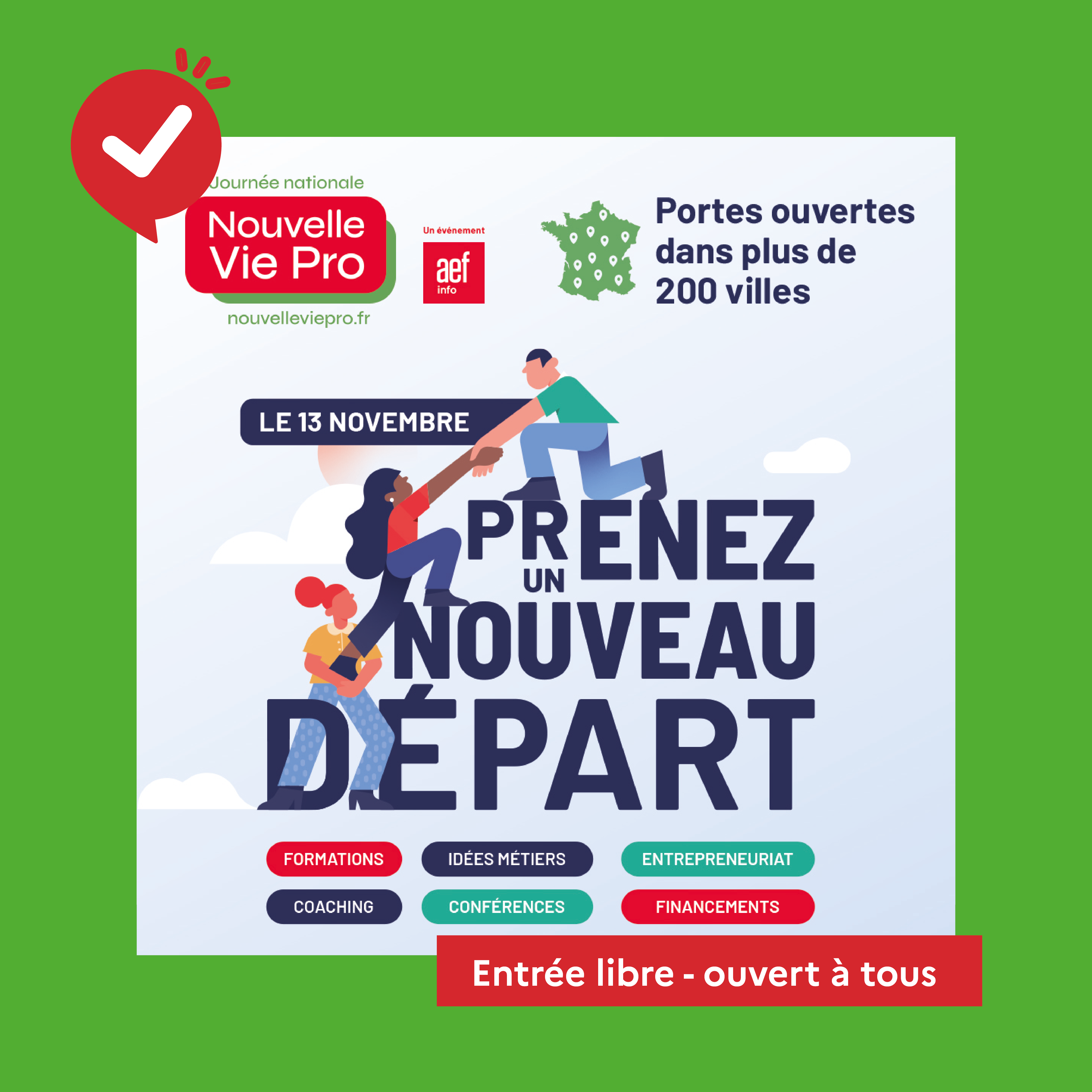 Portée par Nouvelle Vie Pro, cette journée se déroule dans plus de 150 villes en France, réunissant des acteurs clés de la reconversion.
