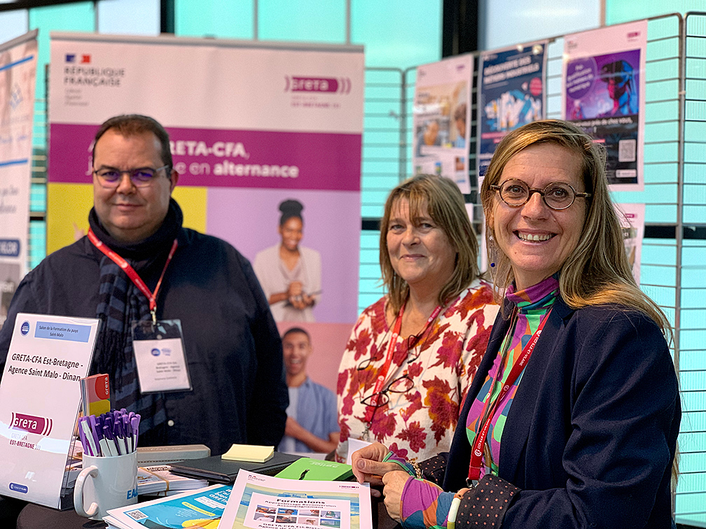 L'agence de Saint-Malo Dinan du GRETA-CFA Est-Bretagne était présente à la Nuit de l'Orientation, organisée au Centre des Congrès de Saint-Malo, jeudi 16 novembre 2023. Avec la participation de Stéphane Garnier, Nadine Kerdelhué et Catherine Lucas.