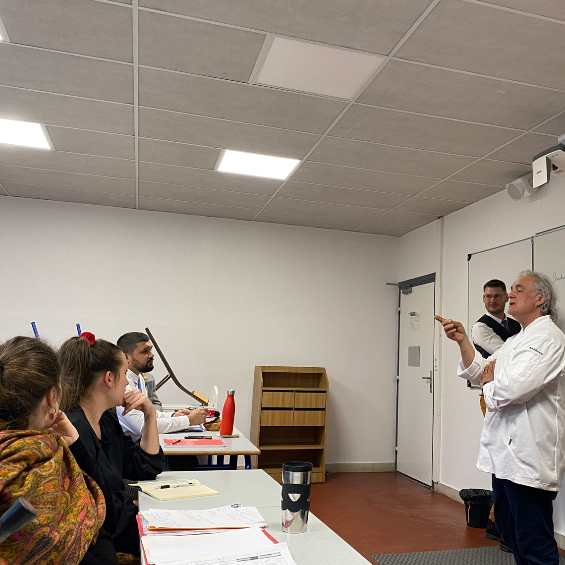 Membre fondateur du label Maître Restaurateur, Pascal Aufray a expliqué aux stagiaires conquis le sens de ce label et les engagements qu’il implique. Il a défendu avec ferveur le « fait maison » et le plaisir de cuisiner, tout en étant honnête sur les difficultés du métier. « Ne pas tromper le client » reste, selon lui, la règle ultime pour tout cuisinier. Il a insisté sur l’importance de garder le plaisir de cuisiner au centre de leur pratique professionnelle.