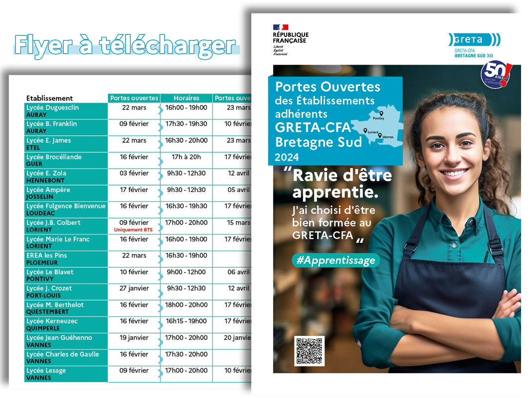 Le GRETA-CFA Bretagne Sud s'appuie sur les établissements scolaires publics de Bretagne Sud pour proposer une large offre de formation accessible en apprentissage.