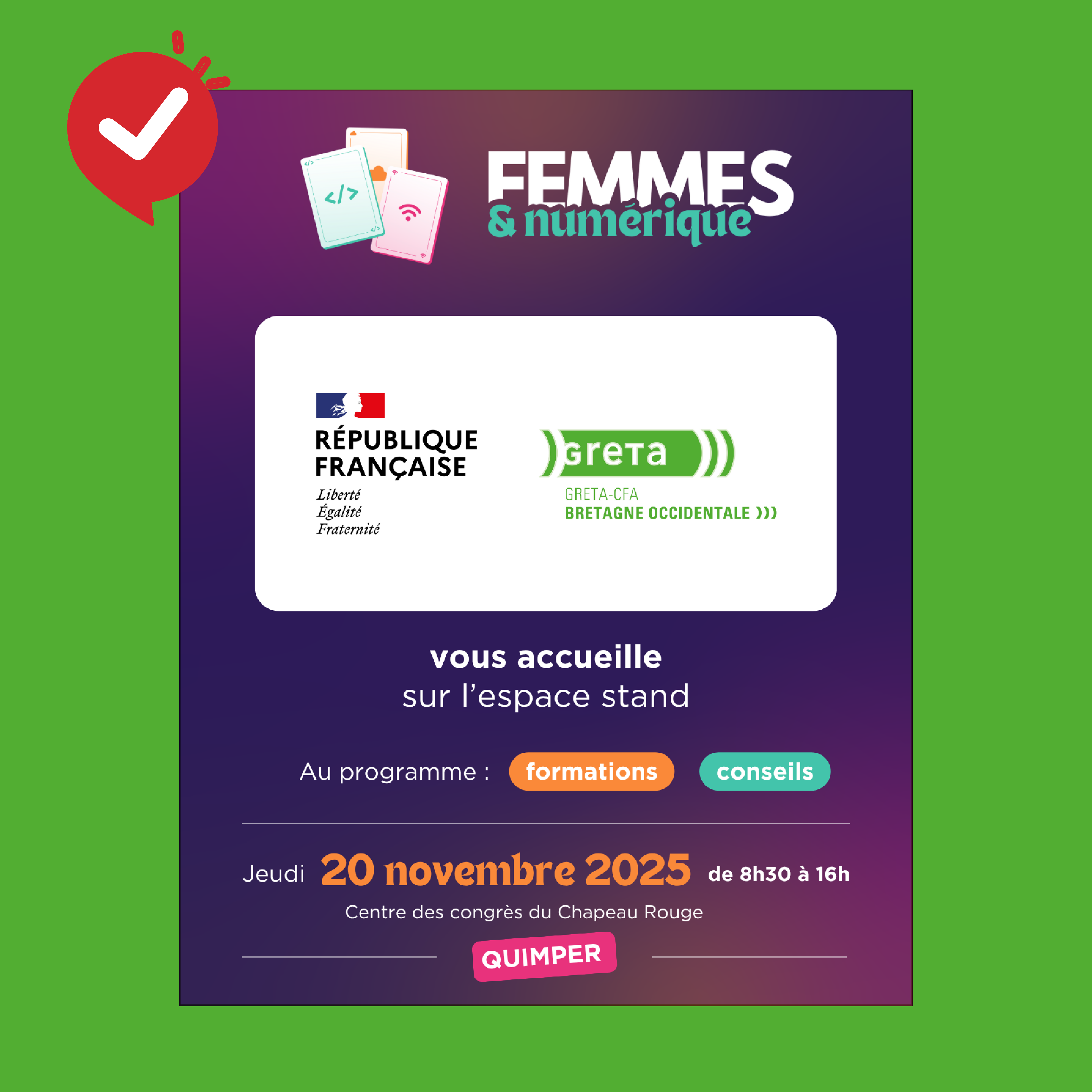 Pilotée par la French Tech Brest Bretagne Ouest, ENI Ecole Informatique, et la CCI Finistère, Femmes et Numérique est une action construite pour informer sur les métiers du numérique, découvrir les formations existantes sur le territoire et encourager l’entrepreneuriat.
