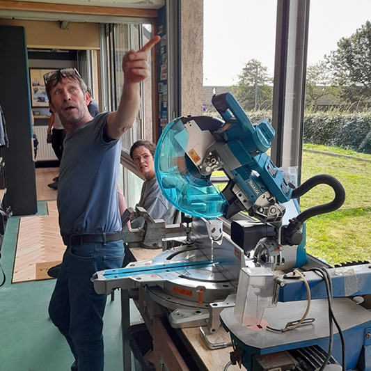 La première impression en arrivant dans le cœur de la formation, ce n’est pas de voir un formateur et ses stagiaires, mais plutôt un chef d’équipe et sa team. Ivan met ses stagiaires rapidement en posture professionnelle, « on est sur du 99% de concret ». L’équipe aborde toutes les étapes d’une production. Du bureau d’études avec les brainstormings, le choix des idées, en passant par la réalisation des plans, les devis et achats, puis aux découpes, à la fabrication et à la pose : le circuit est complet. « Pour nos projets, je leur donne les grandes lignes et ensuite ils échangent, font part de leurs idées, on valide ensemble ce qui est réalisable ou pas, et on se lance ».