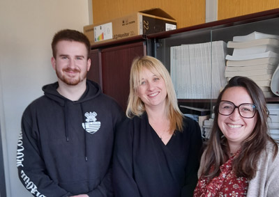 Titouan en compagnie d'Aurélie LE LEUCH coordinatrice de formation et Nolwenn VIDAL assistante de formation du BTS Maintenanace des Véhicules en apprentissage.