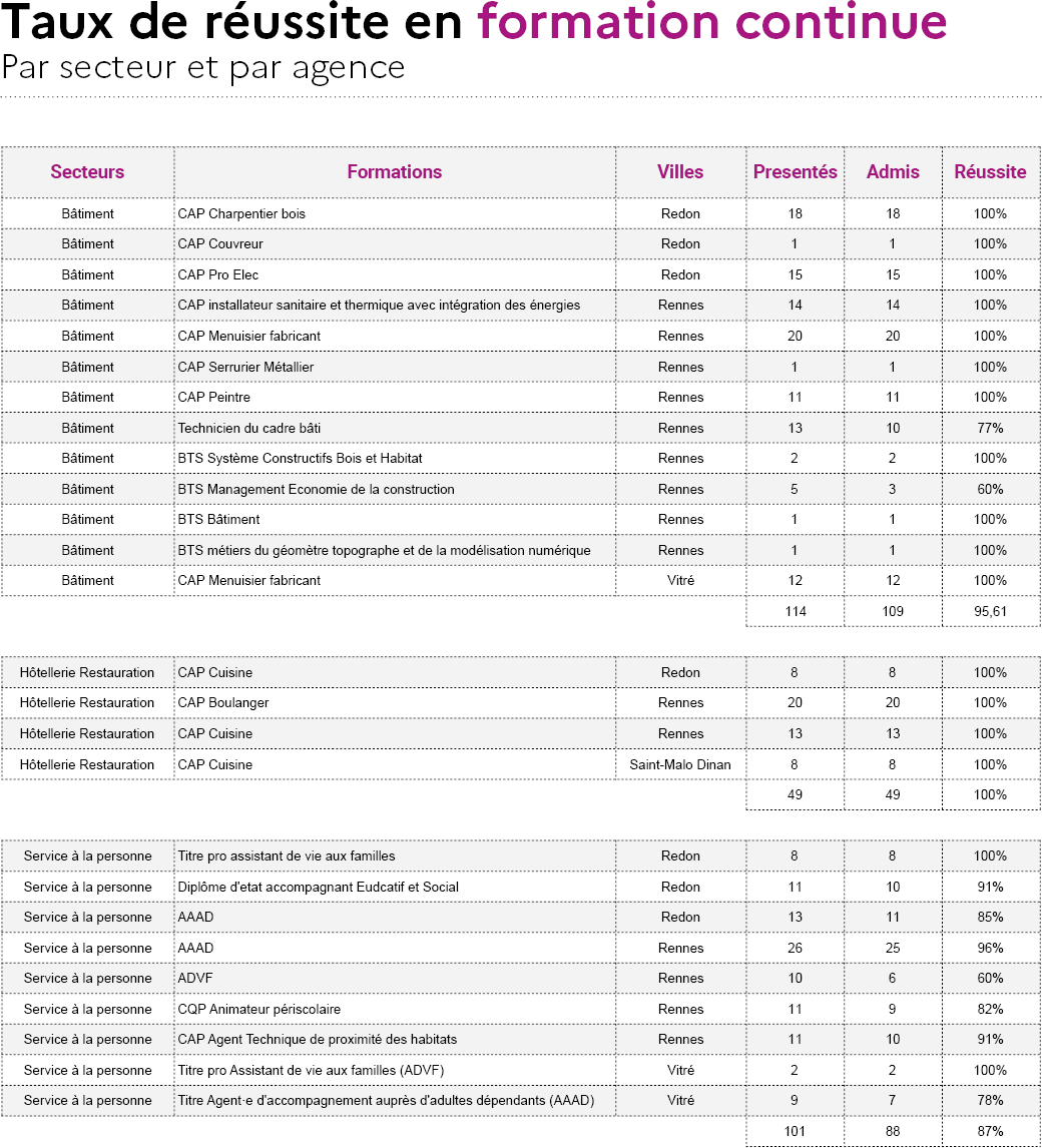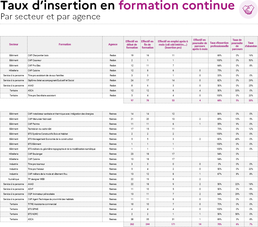 - Taux d'interruption en cours de formation : 2,2 %