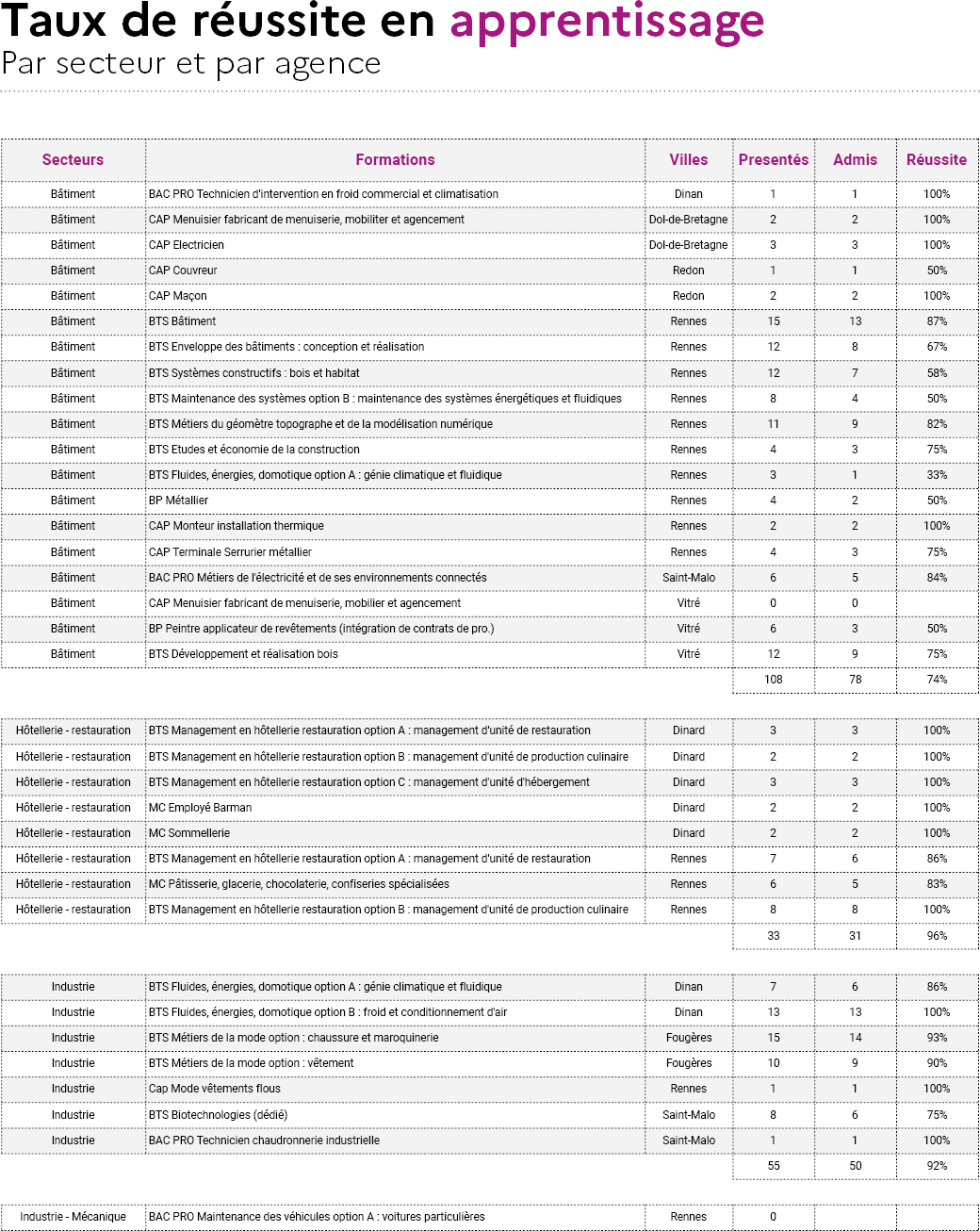 - Taux d'abandon : 5,7% (33 ruptures sur 578 apprentis accueillis)