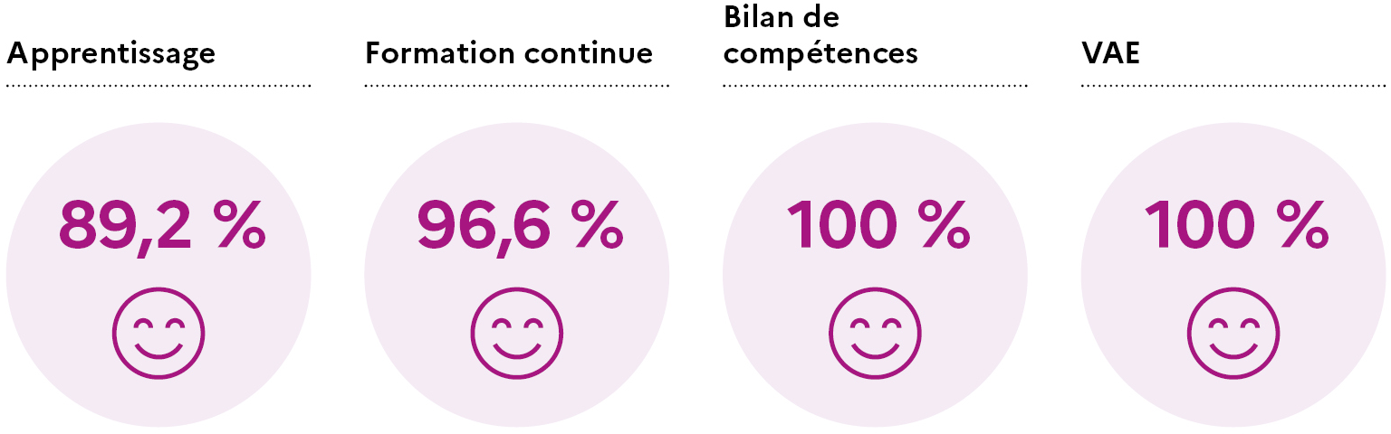 - Taux d'obtention des diplômes ou titres professionnels : 89,2 %