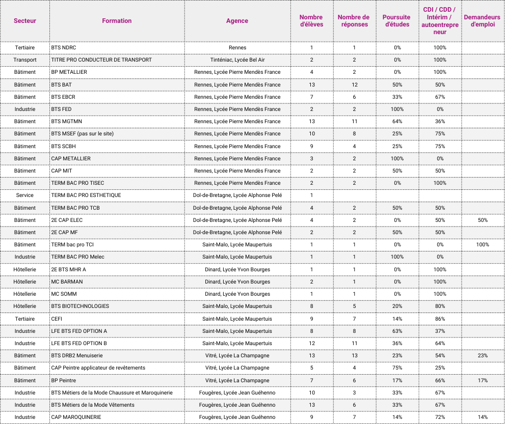 - Taux de poursuite d'études : 35%