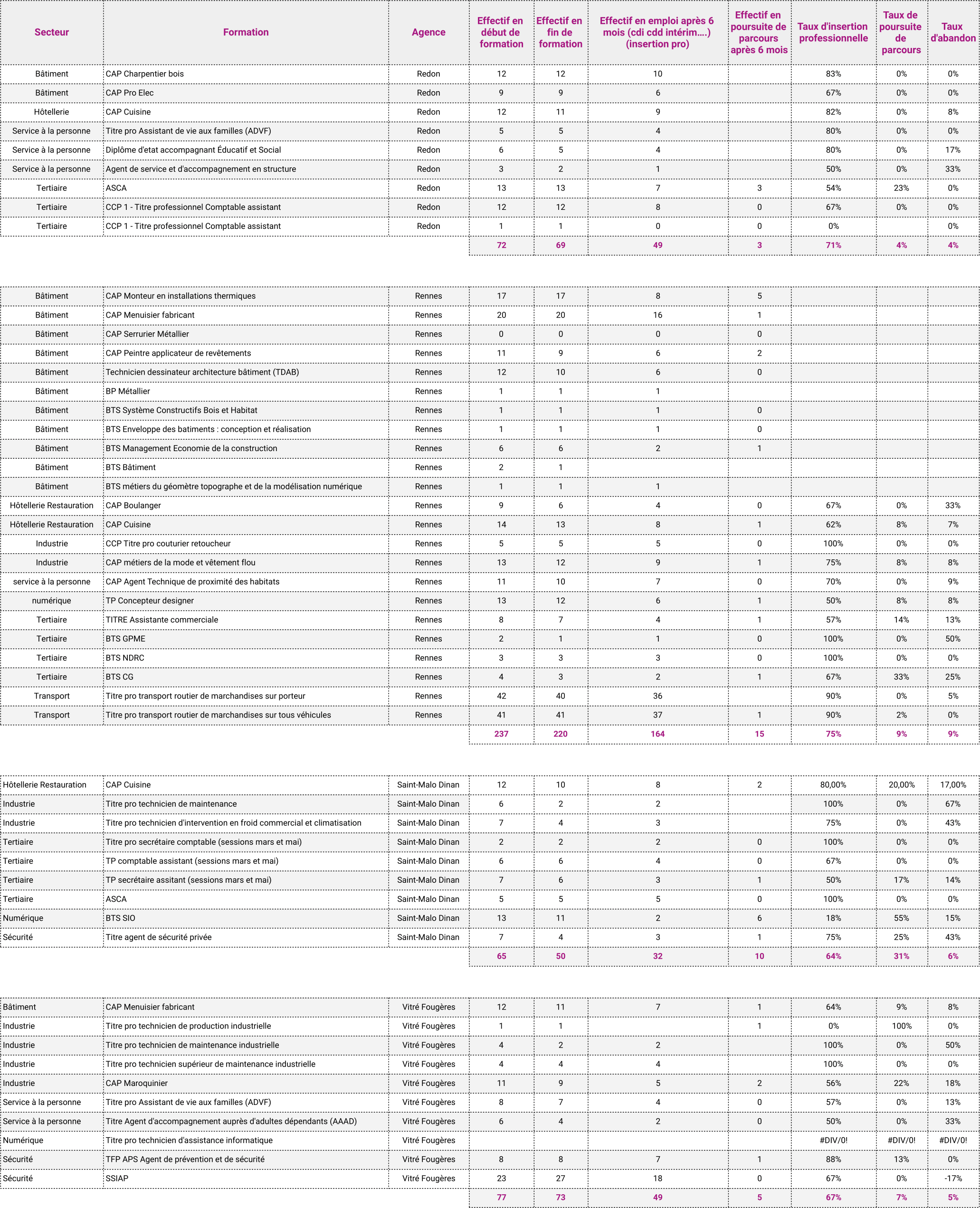 - Taux d'interruption en cours de formation : 55 sur 591, soit 9,3%