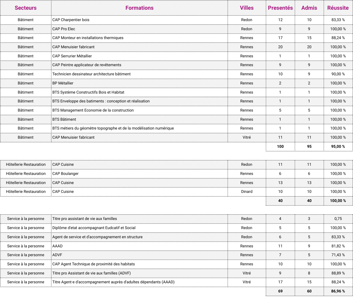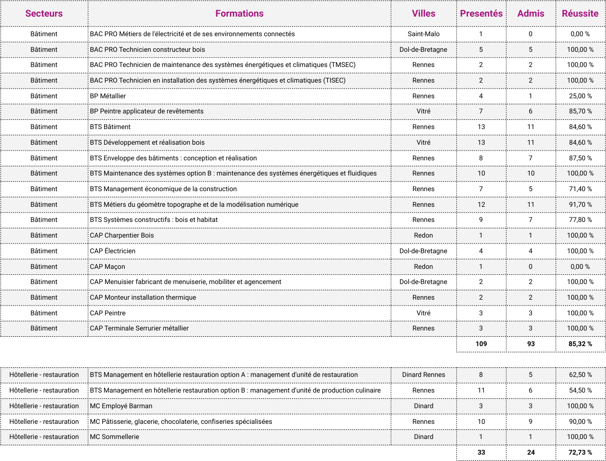 - Taux d'obtention des diplômes ou titres professionnels : 86,45%