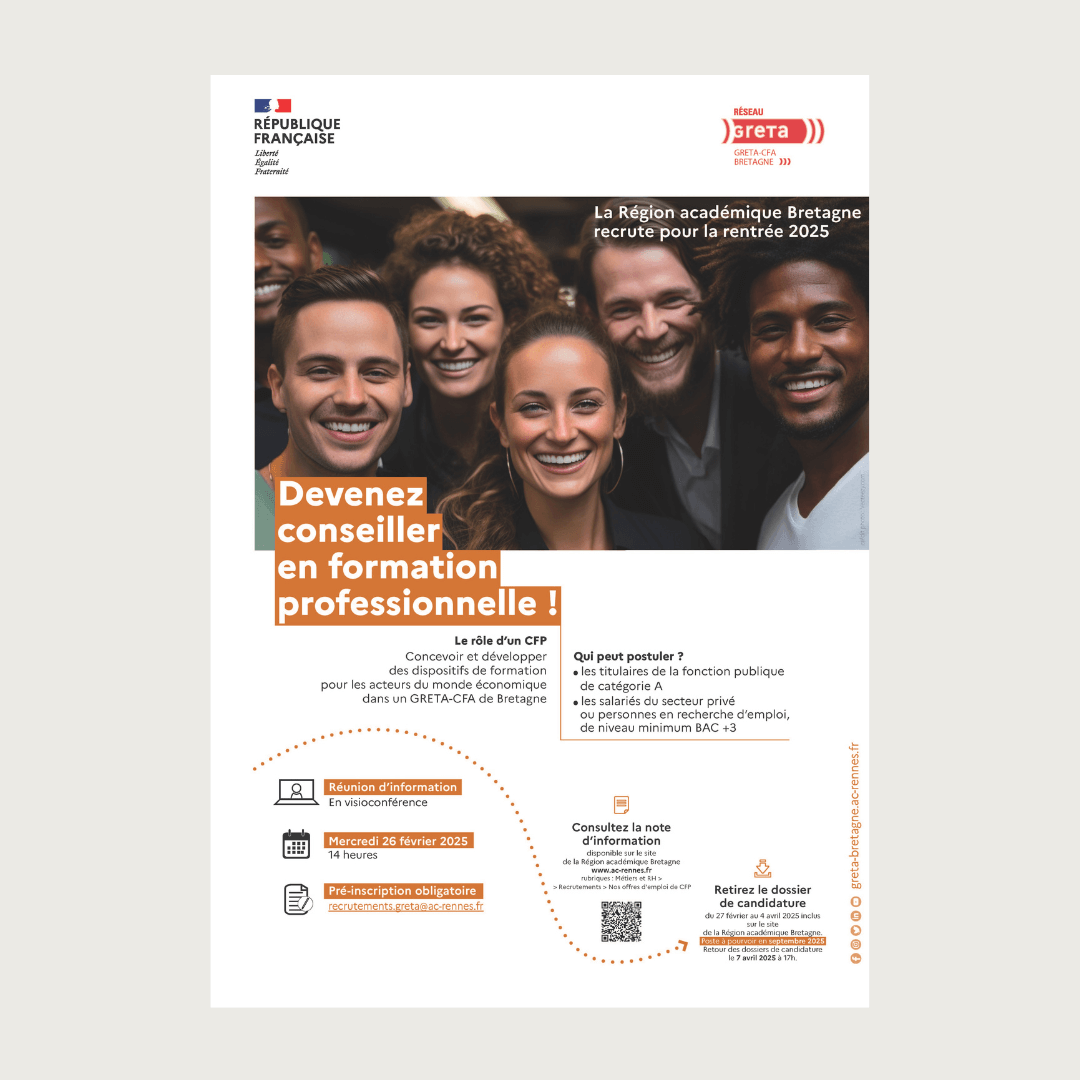 La campagne de recrutement des Conseillers.ères en Formation Professionnelle débute le 27 février jusqu'au 4 avril 2025.